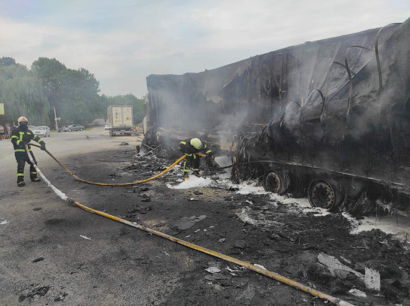 Як повідомили у ДСНС, по прибуттю рятувальників, вогнем був охоплений причеп вантажного авто. Площа пожежі склала 15 кв.м.