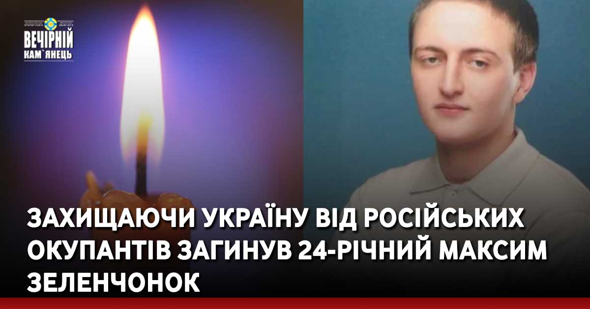 На війні з окупантом загинув 24-річний Максим Зеленчонок із смт Стара Ушиця, що на Кам’янеччині.