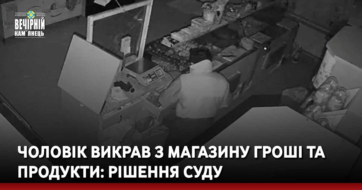 Як повідомляють у прокуратурі, в селі Підлісний Мукарів чоловік заліз через вікно до магазину. Звідти виніс гроші та продукти. Загальна сума вкраденого становила понад 5 тисяч гривень.