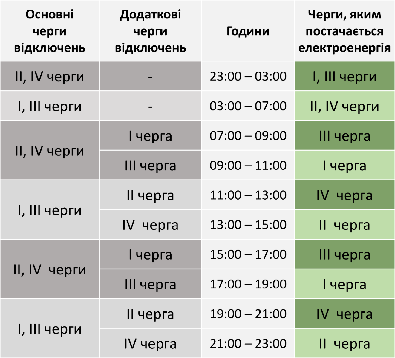 Детальніше переглянути порядок застосування черг, перевірити відключення за адресою можна у розділі «Відключення».