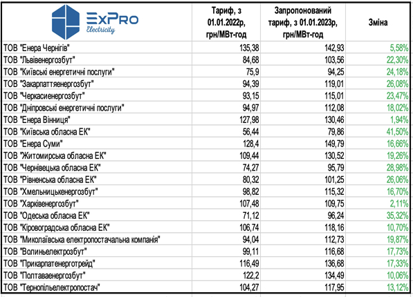 Також, 18 листопада було схвалено проєкти постанов про встановлення тарифів на розподіл для рядку компаній-операторів системи розподілу на 2023-ий рік. За розрахунками ExPro, в середньому тариф на розподіл наступного року вже може зрости на 66%.