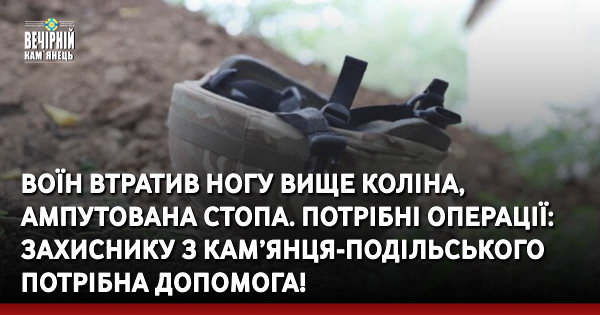 Воїн втратив одну ногу вище коліна, а на другій - ампутація стопи (також ампутовано палець на правій руці, ліва сторона тіла постраждала від опіків, відкрита черепно-мозкова травма).