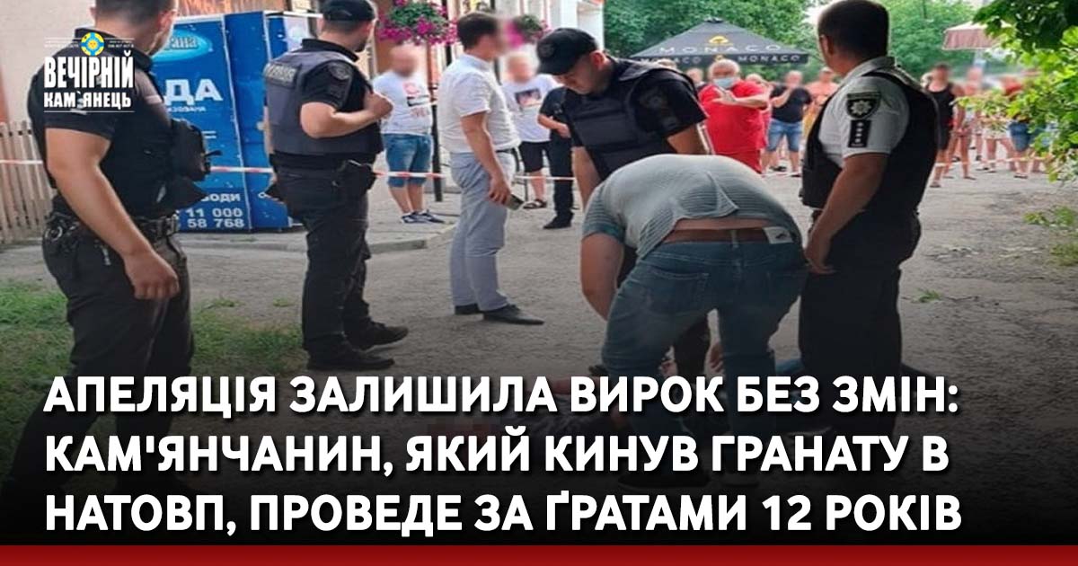 Апеляція залишила без змін вирок суду першої інстанції, яким чоловіка, що кинув гранату на літню терасу з людьми засуджено до 12 років позбавлення волі.