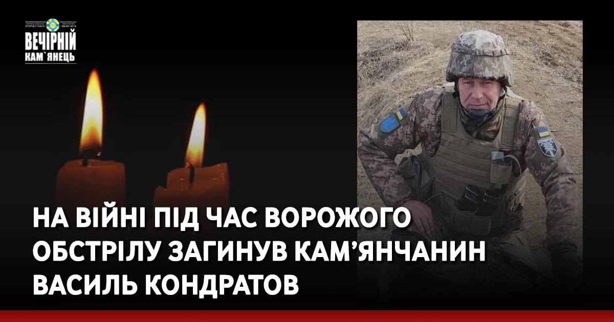 Під час ворожого мінометного обстрілу поблизу н/п Кам'янське Запорізької області загинув камʼянчанин Василь Кондратов.
