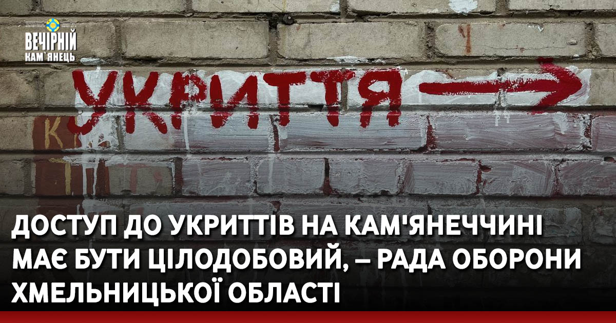 Рада оборони Хмельниччини зобов'язала районні військові адміністрації спільно з органами місцевого самоврядування привести в належний стан наявні укриття, забезпечити цілодобовий та безперешкодний доступ до них.