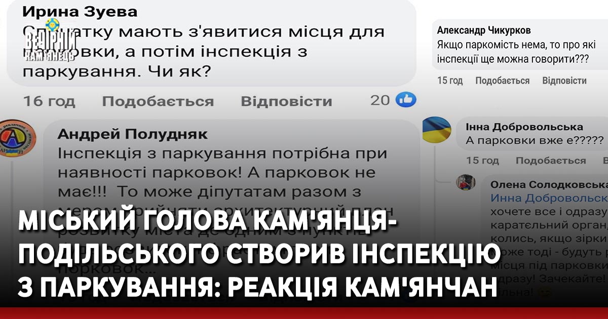 Проте, кам'янчан така новина дещо обурила. На сайті Кам'янець-Подільської міської ради, дописувачі скаржаться на проблема з місцями для паркування. А вірніше кажучи, на відсутність парковок, та не розуміються " як можна створювати інспекцію з паркування, коли не має належно облаштованих паркомісць".