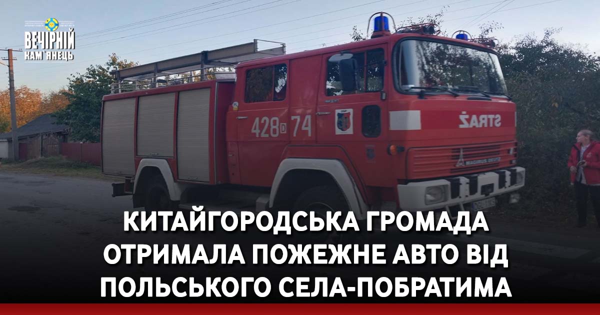 « Китайгородська громада отримала свій перший автомобіль пожежної охорони. А значить безпекова ситуація в громаді під контролем», - написали на сторінці громади у Фейсбук. – « Цінний подарунок прибув від нашого побратима - гміни Котля завдяки укладеному сільським головою Юрій Безродний співробітництву з польською стороною та міжнародній співпраці радника голови районної ради Дениса Шевчука.