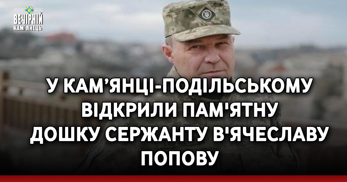 У Кам'янці-Подільському, що на Хмельниччині, відкрили меморіальну дошку військовослужбовцю В'ячеславу Попову.