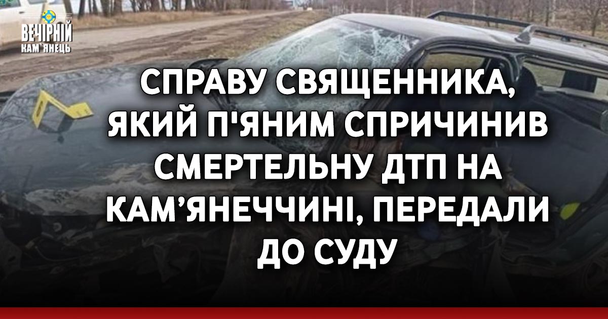 Прокурорами Кам’янець-Подільської окружної прокуратури до суду направлено обвинувальний акт стосовно 49-річного жителя міста Дунаївці священнослужителя УПЦ (мп) за фактом порушення правил безпеки дорожнього руху особою, яка керує транспортним засобом у стані алкогольного сп’яніння, що спричинило смерть потерпілого.