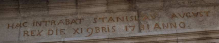 Напис на фризі латинською оповідає, що зустрічали короля вірнопіддані пишно. Було це 11 листопада 1781 року.