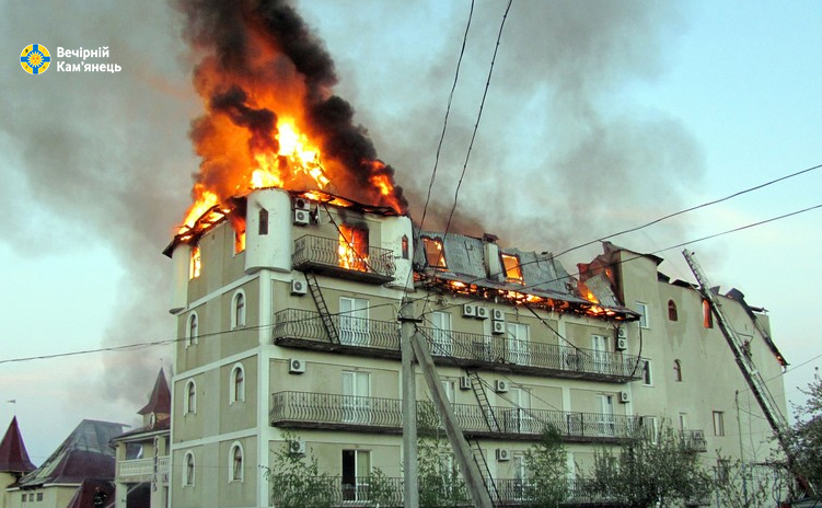 На фото опублікованих «Вечірнім Кам’янцем» також видно, що на момент прибуття рятувальників будівля готелю не була охоплена вогнем.