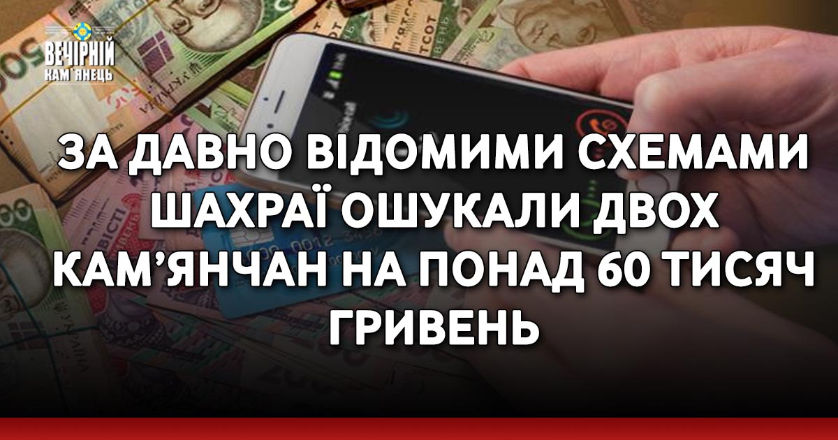 Минулої доби двоє жителів Кам’янець-Подільського району повідомили телефонним шахраям реквізити своїх рахунків та втратили сумарно понад 60 тисяч гривень.