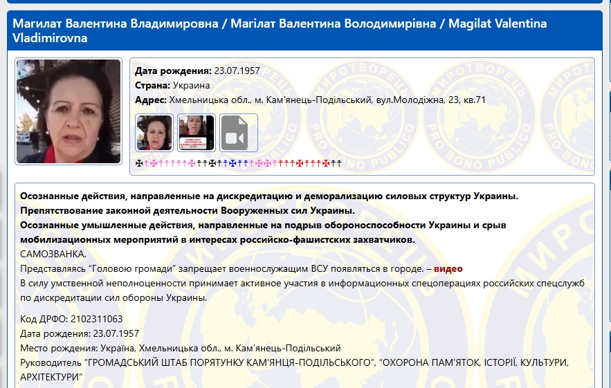 Так, до бази « Миротворець» потрапила «активістка» з Кам’янця-Подільського Валентина Магилат.