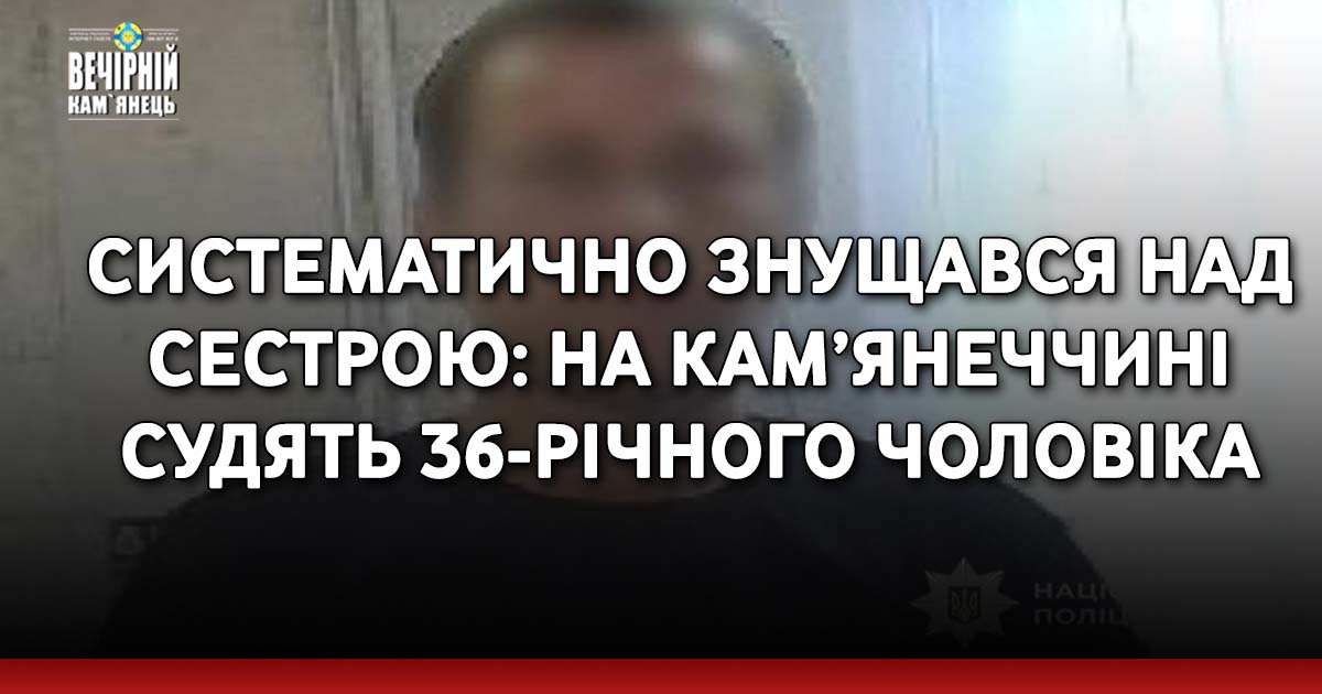На Камʼянечичні перед судом постане 36-річний чоловік, який вчиняв домашнє насильство стосовно рідної сестри.