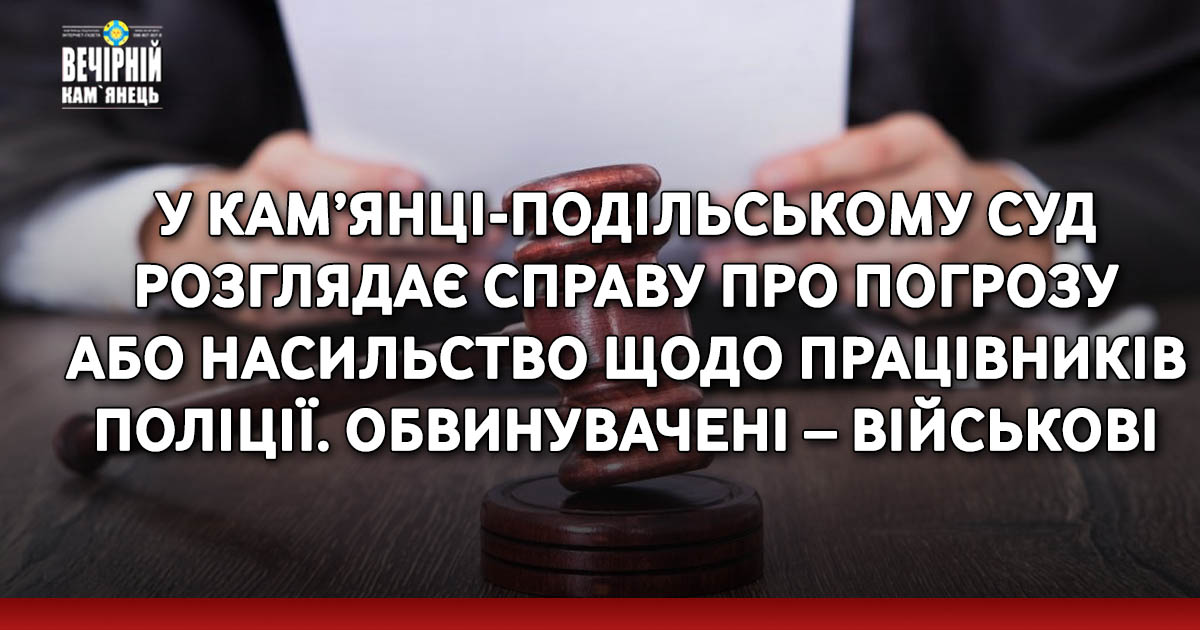 Кам’янець-Подільський міськрайонний суд розглядає справу за обвинуваченням двох військовослужбовців у вчиненні кримінального правопорушення, передбаченого ч.1 ст.28 ч.1 ст.345 КК України ( Погроза або насильство щодо працівника правоохоронного органу).
