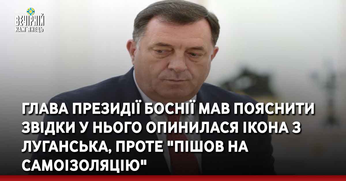 Голова президії Боснії і Герцеговини (БіГ) Мілорад Додік пішов на домашню ізоляцію “після контакту з людиною, у якої було виявлено коронавірус”.