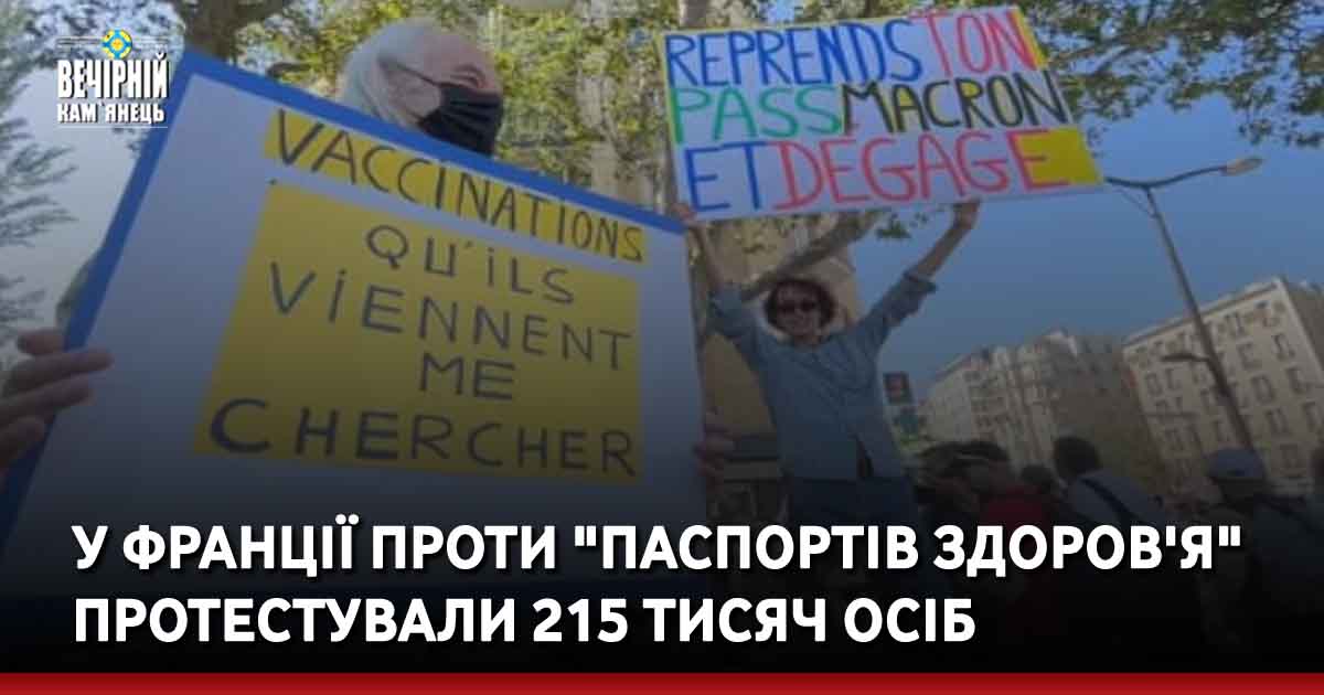 В акціях протесту проти "паспортів здоров'я" по всій Франції в суботу взяли участь 214 845 осіб.