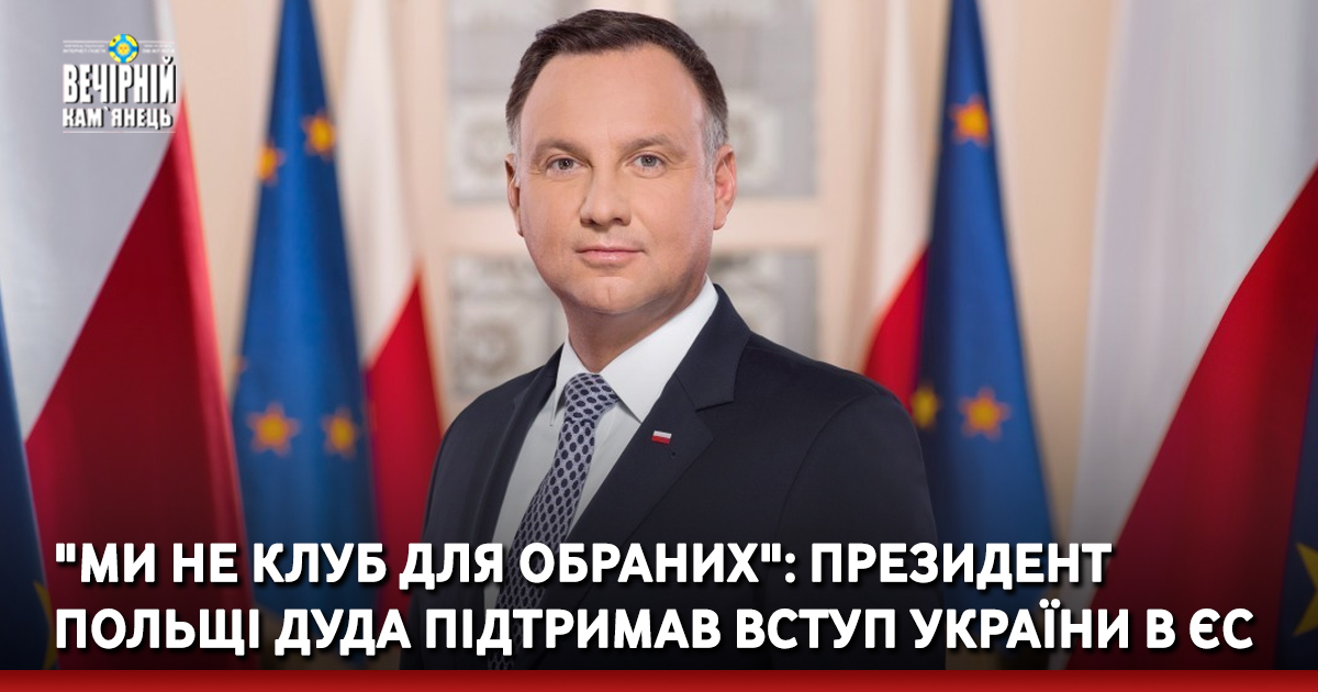 Президент Польщі Анджей Дуда заявив, що Європейський Союз повинен бути розширений за рахунок країн, які прагнуть до нього приєднатися, зокрема України, Молдови та інших.