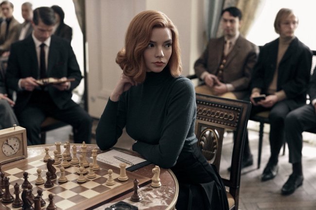 «Хід королеви» – тріумфатор Золотого Глобуса, який нещодавно пройшов, зробив шахи знову актуальними, нагадавши людям, що більшого драматизму, ніж під час граничної інтелектуальної напруги, і бути не може. Еталонна спортивна драма тут розгортається на фоні історії про дорослішання дівчинки-сироти, з її залежностями до наркотиків, модного одягу, людей. Незвичайна зовнішність Ані Тейлор-Джой, яка зіграла в серіалі головну роль, має абсолютно гіпнотичний ефект. Ну а шахова лінія, яка відправляє дівчину боротися з фінальним босом у його лігво – Радянський Союз, дозволить глядачам побачити і любовно зображений СРСР.