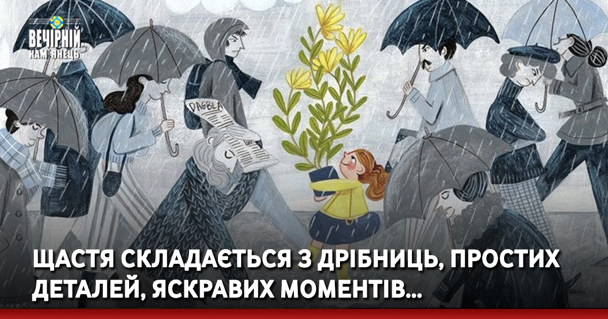 Адже щастя – це коли живі батьки і здорові діти. Коли поспішаєш на важливу зустріч, вилітаєш кулею з дому, а чоловік вже почистив від снігу твою машину. Коли з завтрашнього дня – літні канікули і пахне півоніями. Батьки заснули, а ти навшпиньки пробираєшся в більшу кімнату, щоб подивитися «Брудні танці». Знаходиш в зимовій сумці торішню цукерку або сто гривень. Робиш повне обстеження і дізнаєшся, що абсолютно здорова. Забуваєш на дитячому майданчику сумку з документами, а потім через годину повертаєшся і знаходиш її цілою і непошкодженою.