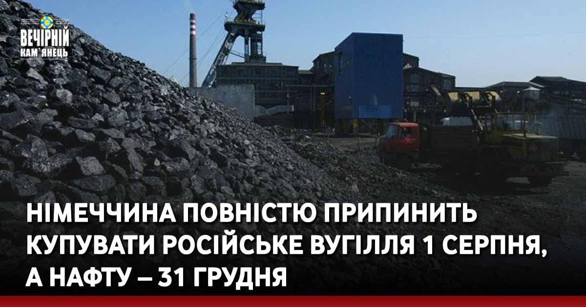 Німеччина повністю припинить закуповувати російське вугілля 1 серпня та російську нафту 31 грудня.