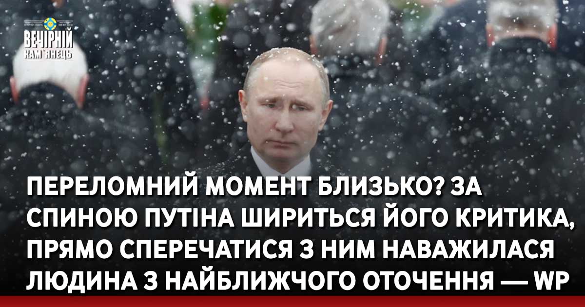 Невдоволення, висловлене членом найближчого оточення Путіна, було пов’язане з тим, що він вказав на неефективне управління військовою кампанією та на помилки, допущені тими, хто її веде. А деякі опитані з цього приводу російські джерела WP навіть заявляють про наближення «переломного моменту» для політичного майбутнього Путіна, пише НВ.