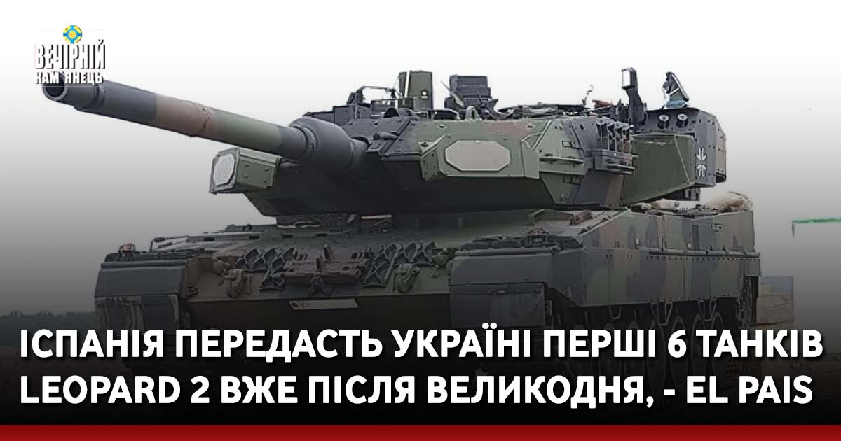 "Іспанія відразу після Великодня направить в Україну перші шість бойових танків Leopard 2A4, які вона пообіцяла українській владі для протистояння російському вторгненню", - пише видання, посилаючись на джерела в іспанському уряді.