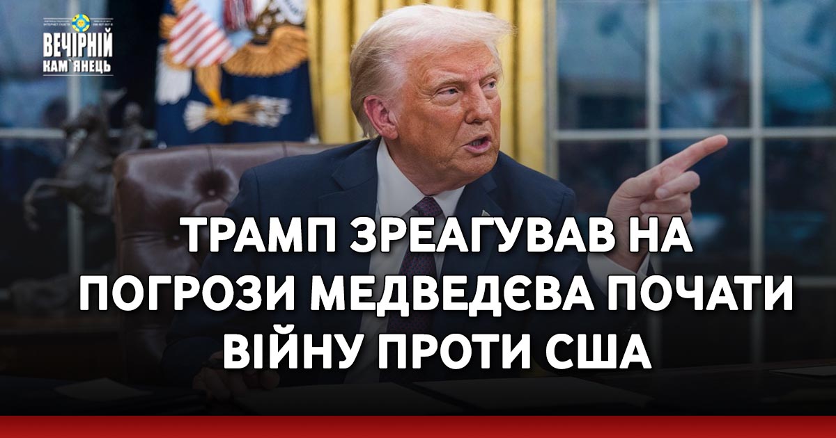Президент США Дональд Трамп зреагував на погрози заступника глави радбезу РФ Дмитра Медведєва почати війну проти США.