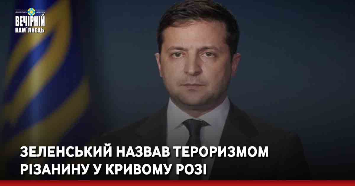 Президент України Володимир Зеленський назвав напад чоловіка з ножем на перехожих у Кривому Розі - абсолютним тероризмом.