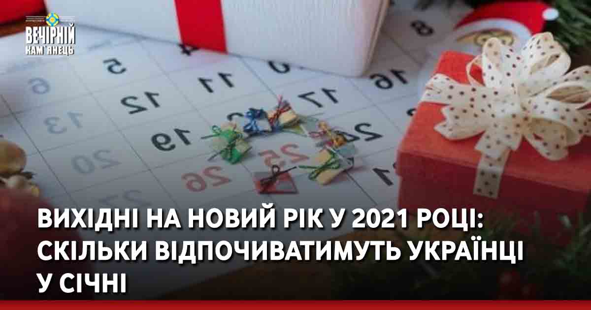 Що стосується четверга 31 грудня, то цей день буде робочим. Однак робочий день буде скорочений на 1 годину. Наступного дня розпочнуться триденні вихідні: з п'ятниці, 1 січня, по неділю, 3 січня.