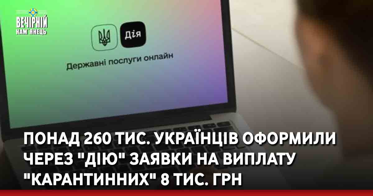 Для отримання підтримки бізнесу на карантині у вигляді одноразової допомоги у 8 тис. гривень за п’ять днів через державний сервіс "Дія" подала заяви понад 261 тис. осіб.