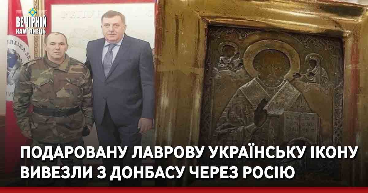 Ікона, яку голова Президії Боснії та Герцеговини Мілорад Додік подарував міністру закордонних справ Росії Сергію Лаврову, була вивезена з Донбасу через Росію і Сербію.