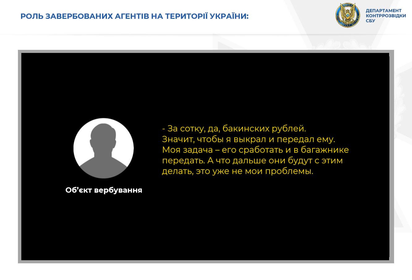 Для виконання своїх завдань агенти проводили вербувальну роботу і серед високопосадовців ЗСУ.