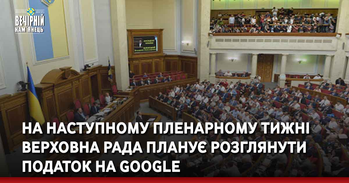 На наступному пленарному тижні Верховна Рада планує розглянути податок на Google, законопроект про обіг вогнепальної зброї та зупинку машин поліцейськими.