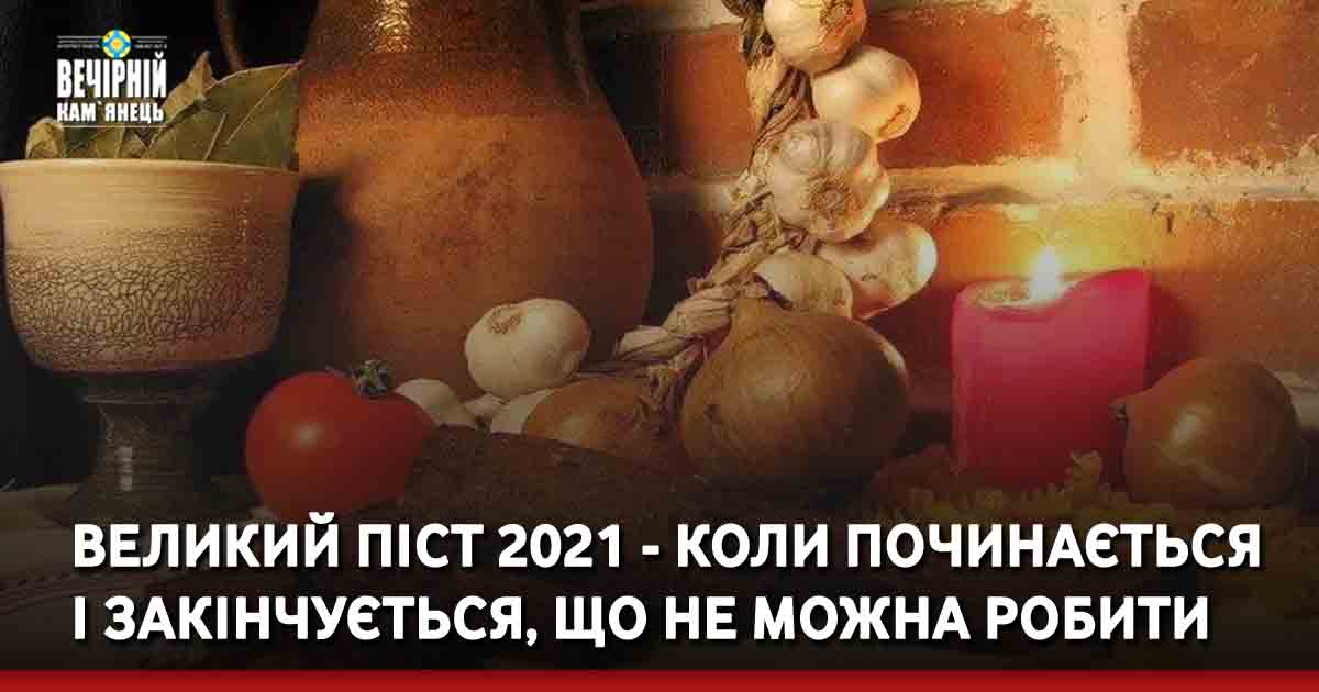 Дата Великого посту не фіксована і залежить від дати Великодня. Цього року Великдень відзначається 2 травня. Таким чином, Великий піст у 2021 році почнеться в понеділок 15 березня і триватиме до 1 травня включно.