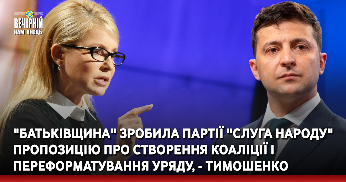 "Батьківщина" зробила партії "Слуга народу" пропозицію про створення коаліції і переформатування уряду.