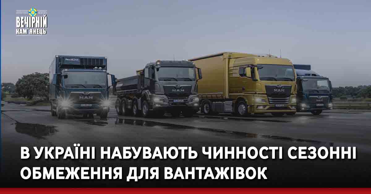 В Україні з 1 червня набудуть чинності сезонні обмеження руху великовагових транспортних засобів у денну пору.