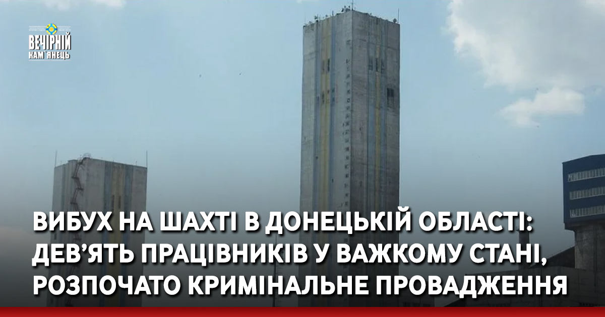 Після вибуху на шахтоуправлінні Покровське в Донецькій області дев’ять постраждалих працівників з опіками перебувають у важкому стані. Їх госпіталізували до місцевої клінічної лікарні інтенсивного лікування.