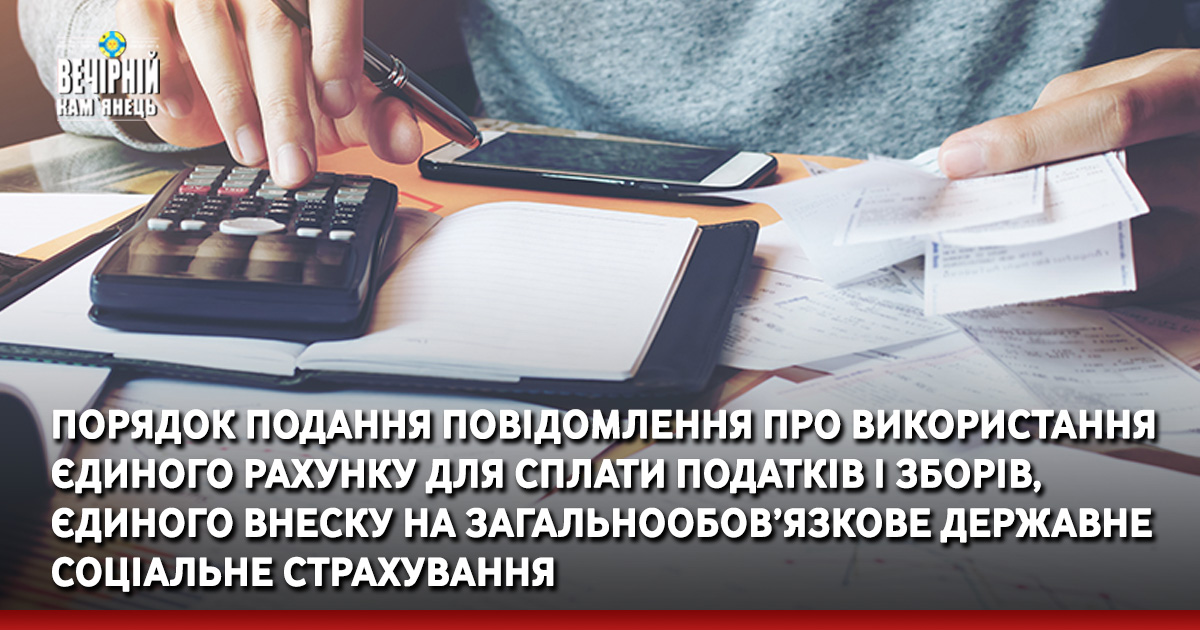 Кам’янець-Подільська ДПІ ГУ ДПС у Хмельницькій області нагадує суб’єктам господарювання, що Законом України від 04.10.2019 р. № 190-IX «Про внесення змін до Податкового кодексу України щодо запровадження єдиного рахунку для сплати податків і зборів, єдиного внеску на загальнообов’язкове державне соціальне страхування» Податковий кодекс України (далі – ПКУ) доповнено ст. 35 прим. 1 «Єдиний рахунок», яка набрала чинності з 01 січня 2021 року.