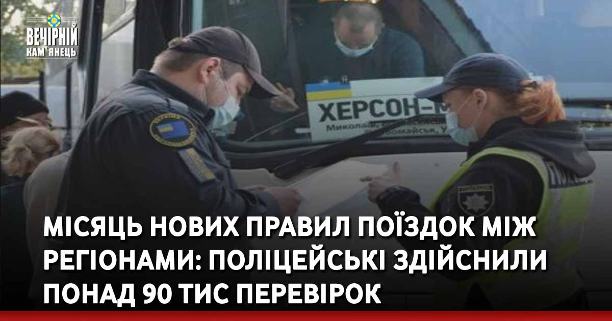 За місяць дії нових правил перевезень між регіонами органи Національної поліції провели 91 168 перевірок регулярних та нерегулярних пасажирських перевезень на предмет наявності у водіїв та членів екіпажу документів про вакцинацію або негативних результатів тестування на COVID-19.
