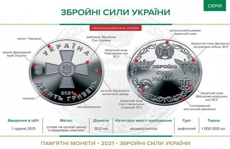 “Монета «Збройні Сили України» присвячена українським військам, на які відповідно до Конституції України покладаються завдання з оборони України, захисту її суверенітету, територіальної цілісності та недоторканності”, - передає Армія.inform.