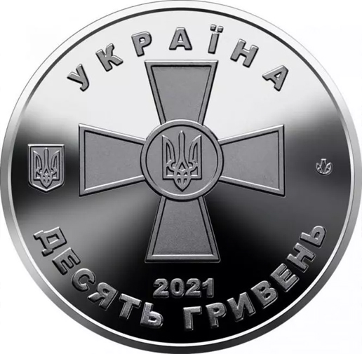На аверсі монети розміщено: угорі - напис Україна, у центрі на дзеркальному тлі — емблема Збройних Сил України, ліворуч від якої - малий Державний Герб України; під емблемою: рік карбування монети - 2021 та номінал - десять гривень; логотип Банкнотно-монетного двору Національного банку України (праворуч від емблеми ЗСУ).