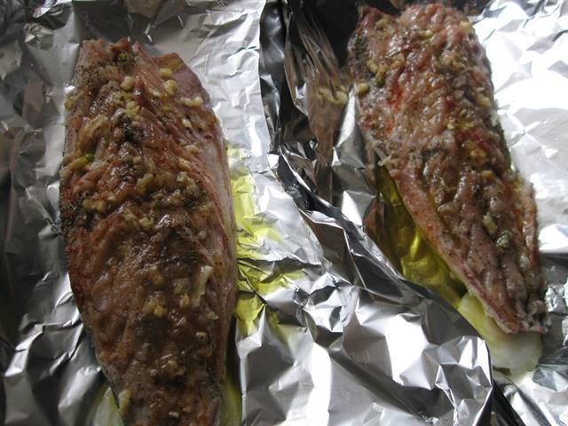 Викладаємо рибу з фольгою на тарілку, скроплюємо лимонним соком і запрошуємо всіх до столу. Смачного!!!