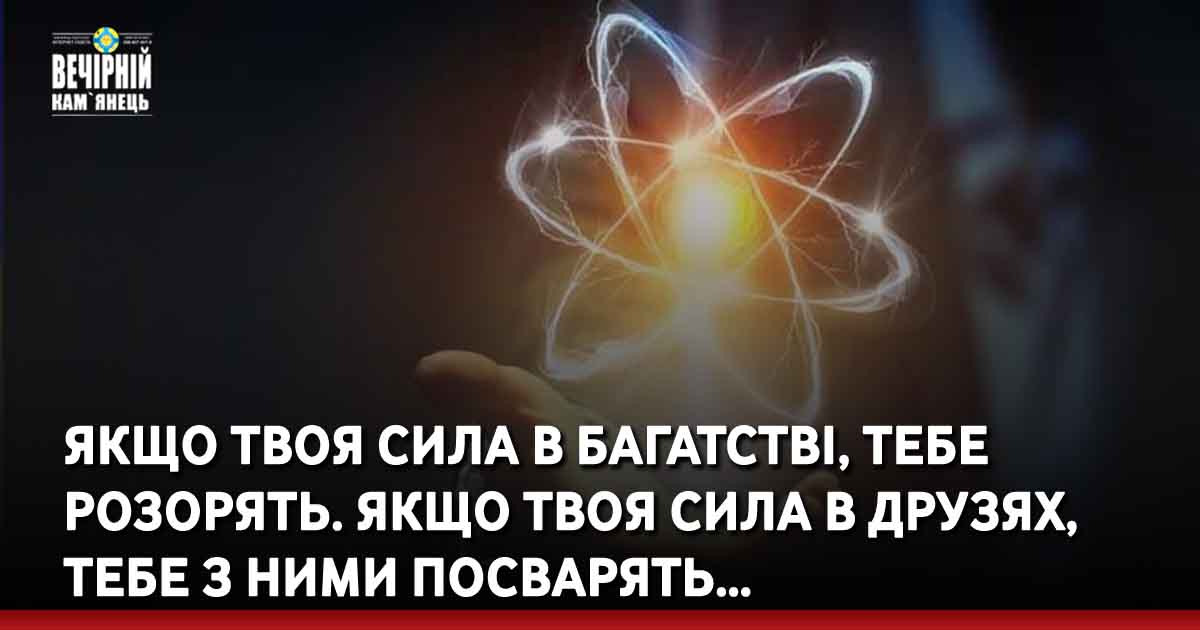 – Якщо твоя сила в багатстві, тебе розорять. Якщо твоя сила в друзях, тебе з ними посварять. Якщо твоя сила в славі, тебе забудуть.