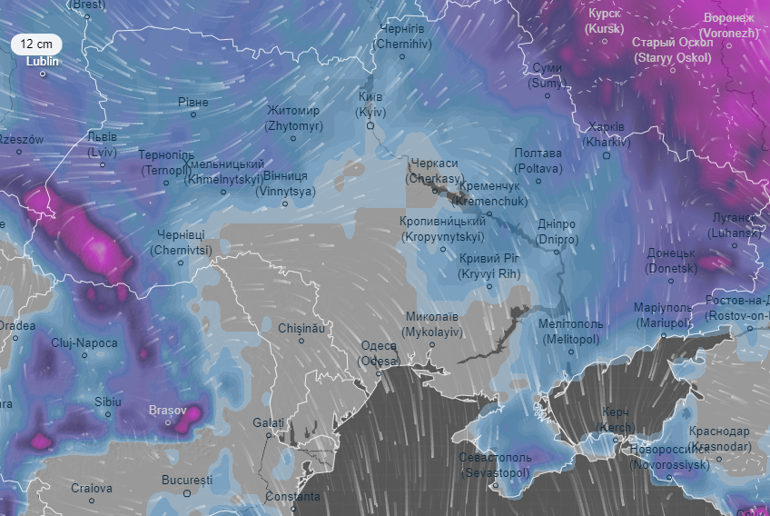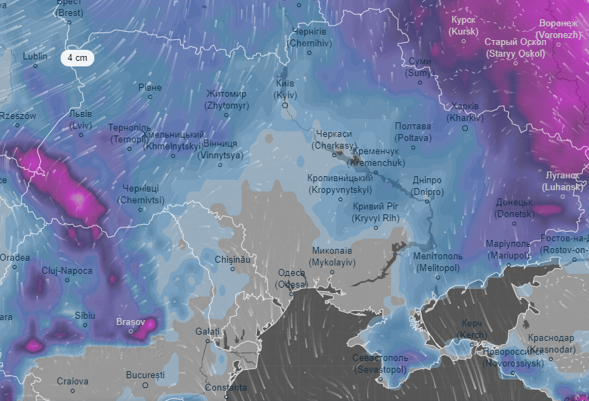 Зокрема, станом на 25 січня у Тернополі, Львові, Хмельницькому радар показує 9 сантиметрів. У Рівному, Житомирі, Чернігові та Полтаві – 6 сантиметрів.