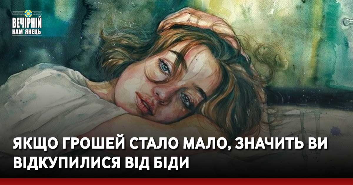 Не треба надто сумувати, якщо ви щось втратили. Якщо вкрали у вас щось. Якщо збитки. Якщо грошей стало мало, можливо, це відкуп, це плата за благополуччя, здоров’я, за життя близьких. Якби знали, за що саме ви заплатили, ви б, можливо, стрибали від радості і вважали, що дешево відбулися.