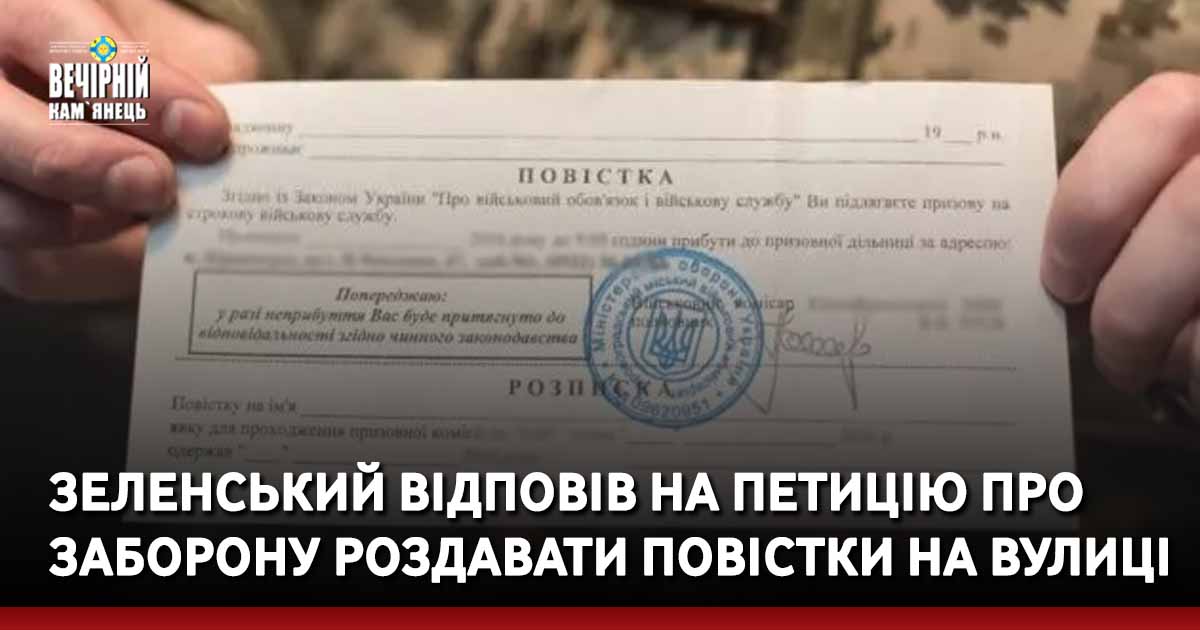 Нагадаємо, що зареєстрована 29 червня електронна петиція з проханням заборонити видавати повістки на блокпостах, заправках і на вулиці вже 15 липня набрала необхідні для розгляду 25 тис. голосів. Автор петиції просив голову держави розпорядитись набирати військовий резерв в першу чергу з охочих та заборонити видачу повісток у місцях, крім військкоматів.