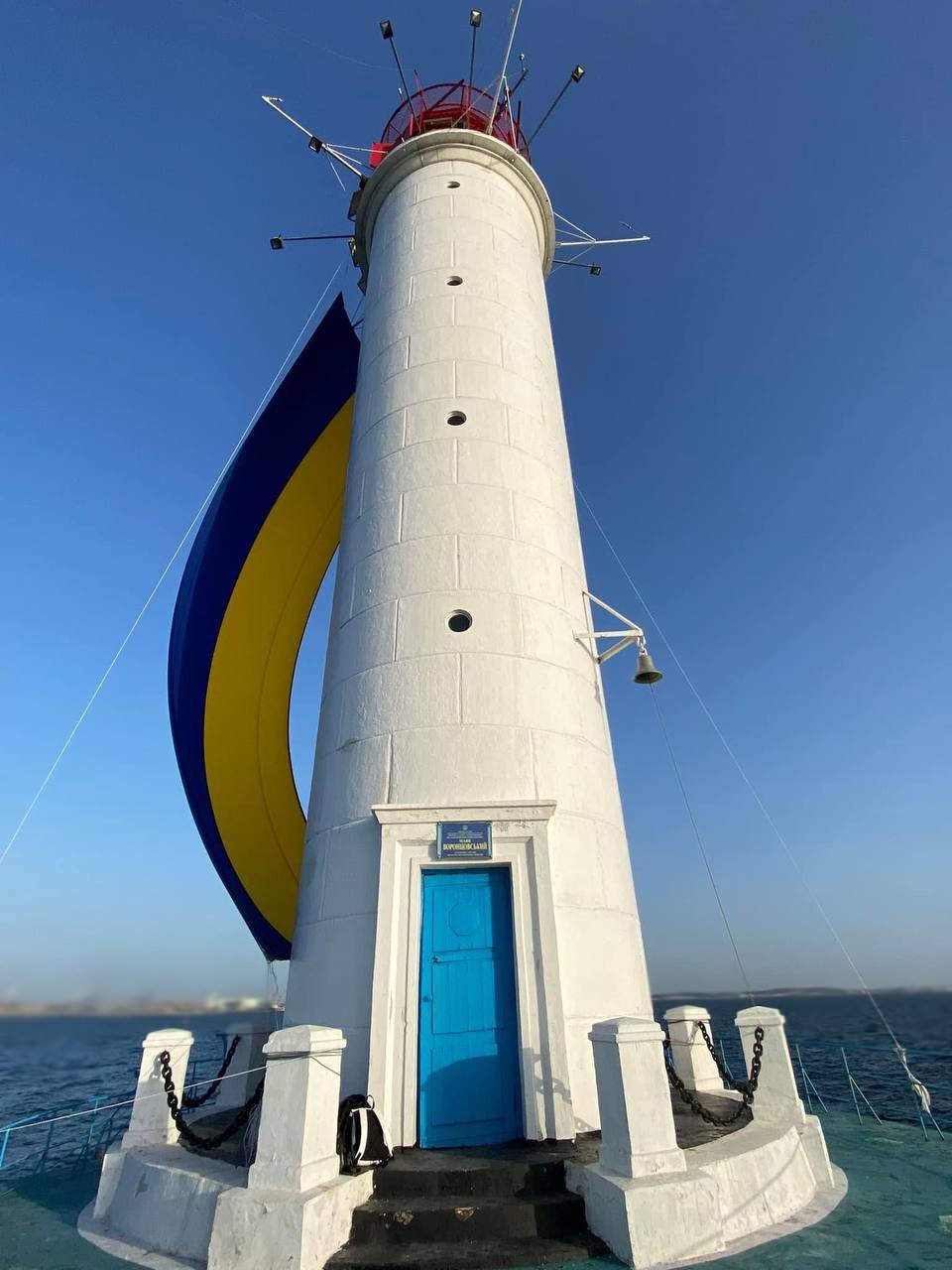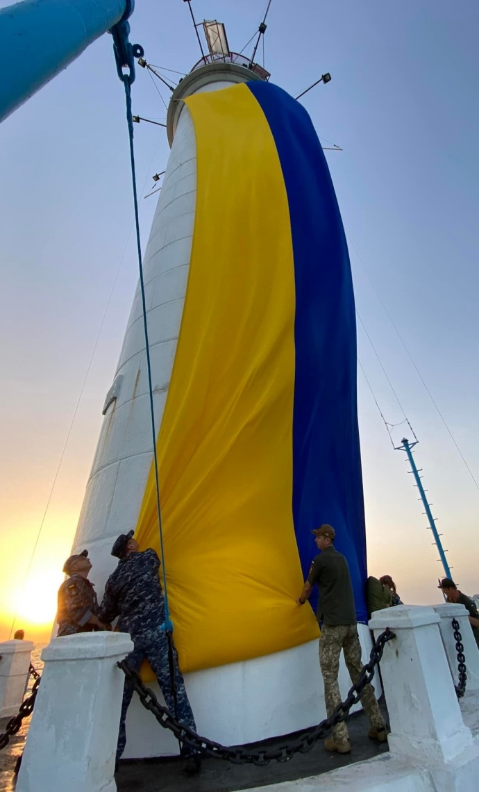 18-метровий прапор розгорнули на візитівці Одесі, Воронцовському маяку о 6 ранку.