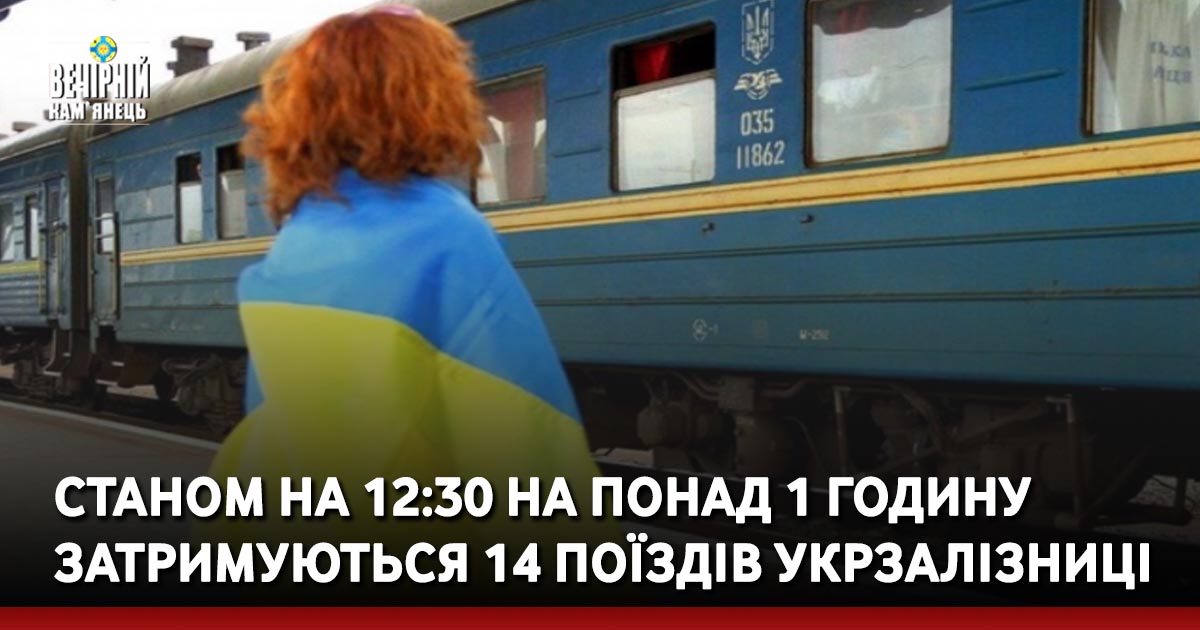 Станом на 12:30 на понад 1 годину затримуються 14 поїздів. Про це інформує Укрзалізниця.