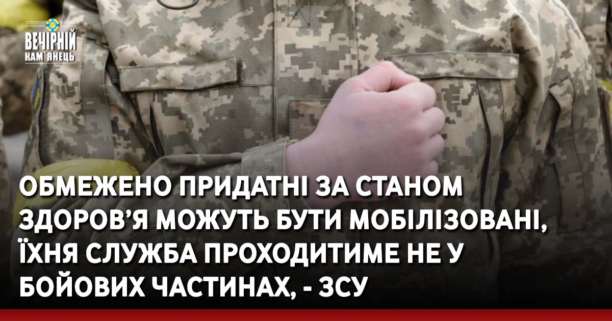 "Ті військовозобов’язані, які обмежено придатні до військової служби у воєнний час, можуть бути мобілізовані, але їхня служба проходитиме не у бойових частинах, а у військових частинах забезпечення", - пояснив він.